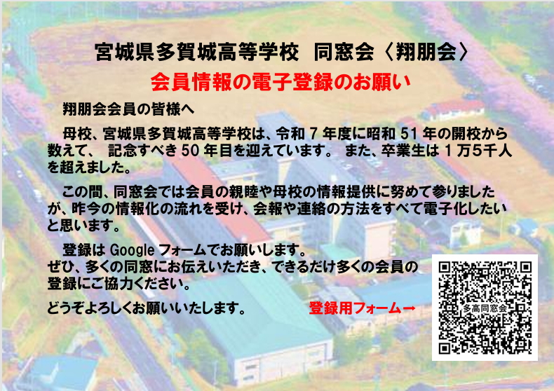 宮城県多賀城高校同窓会「翔朋会」